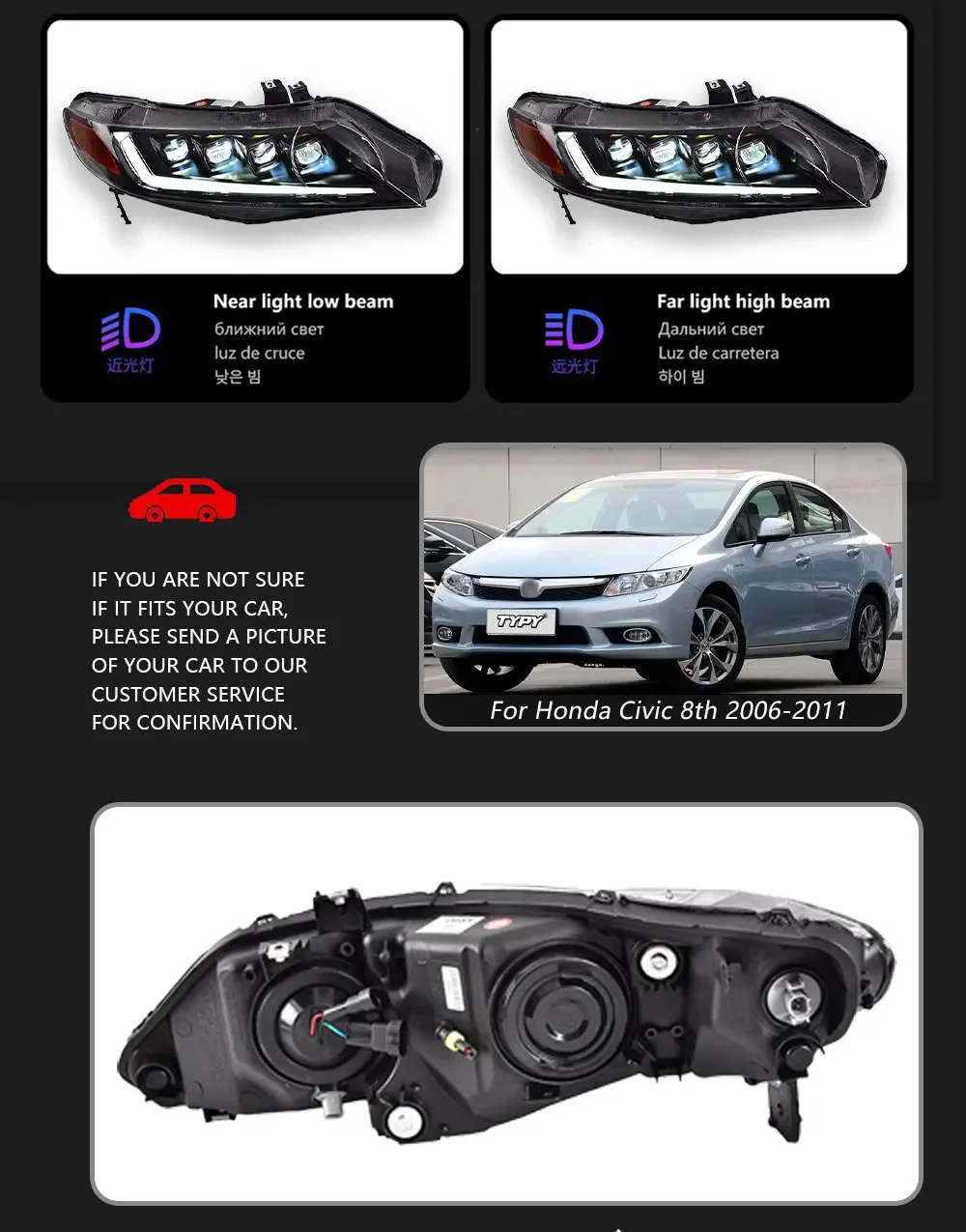 Car For Honda Civic 8th Gen Headlight 2006-2011 Upgrade Modified to New DRL Dynamic Turn Signal LED Headlight Auto Accessories